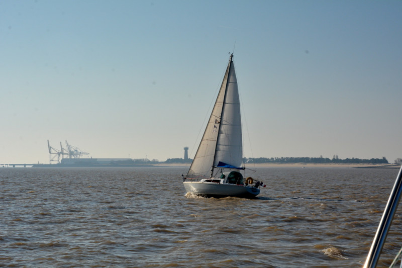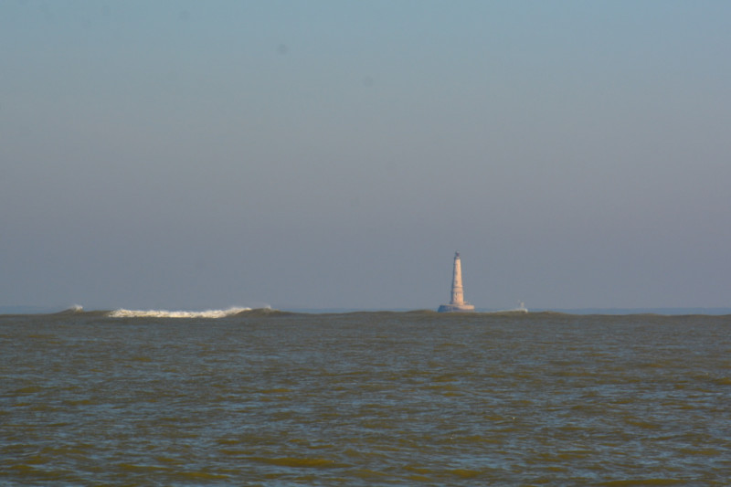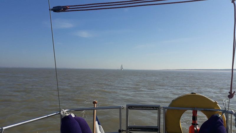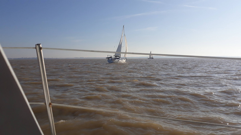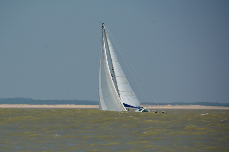 C'est arrivé dans la passe de l'Ouest que les conditions ont changées, le vent est monté d'un cran, avec des pointes à 20nds, et surtout le désordre désormais caractéristique de cette passe, avec une houle croisée par le clapot, les bateaux jouaient à saute mouton... C'est un mauvais moment à passer on le sait, et une fois rentré derrière Cordouan, au niveau du marégraphe, c'est l'Estuaire qui reprend le dessus, la mer s'applati et la fin de parcours est beaucoup plus calme.