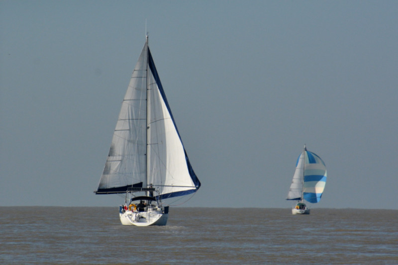 La promenade a commencé par une descente vent arrière de la passe Sud. Mer plate, 5nds de vent apparent, LOUPIOT en a profité pour sortir le spi, ce qui lui a permi de cavaler un moment en tête de la flotte.